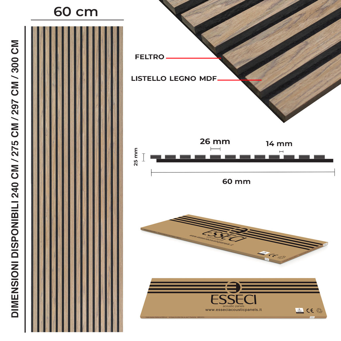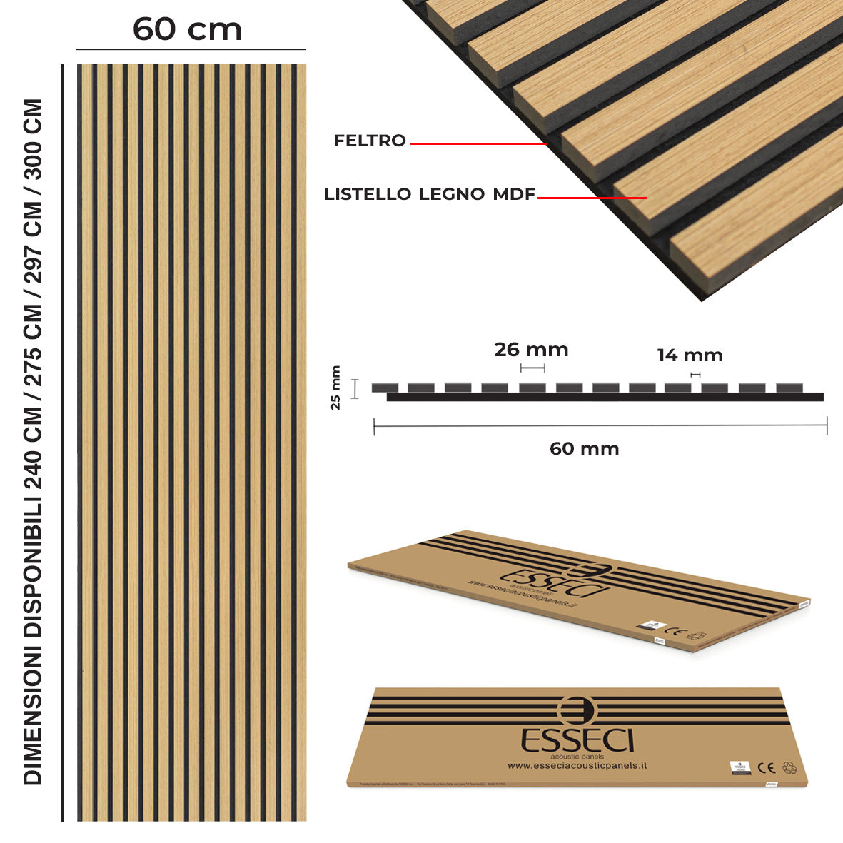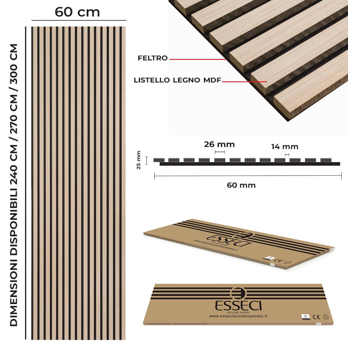 Ogni scatola presenta 1 pannello fonoassorbente legno ed è confezionato singolarmente, insieme alle istruzioni di Montaggio.