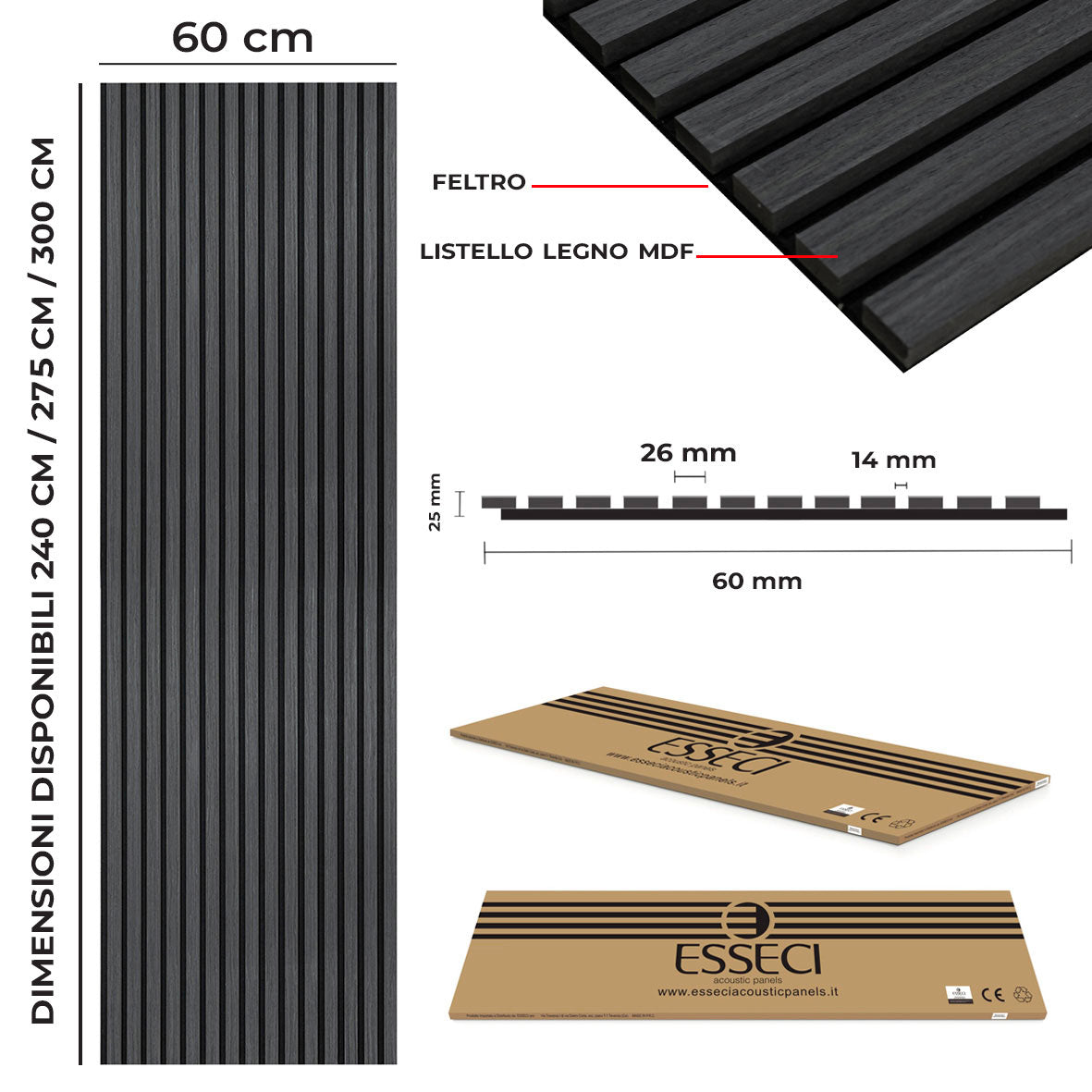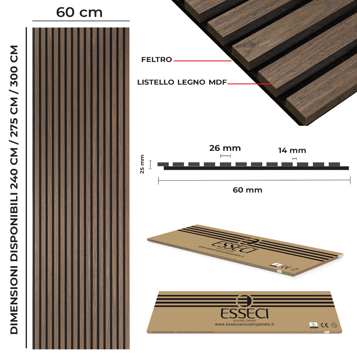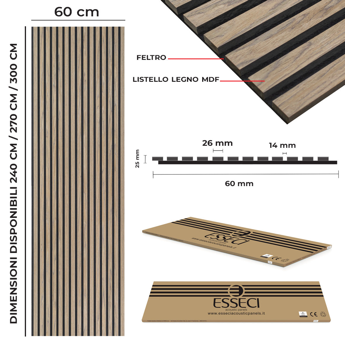 Ogni scatola presenta 1 pannello fonoassorbente legno ed è confezionato singolarmente, insieme alle istruzioni di Montaggio.