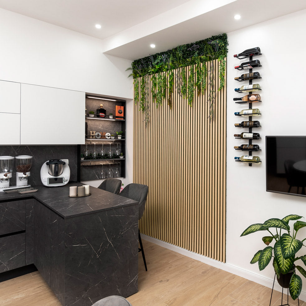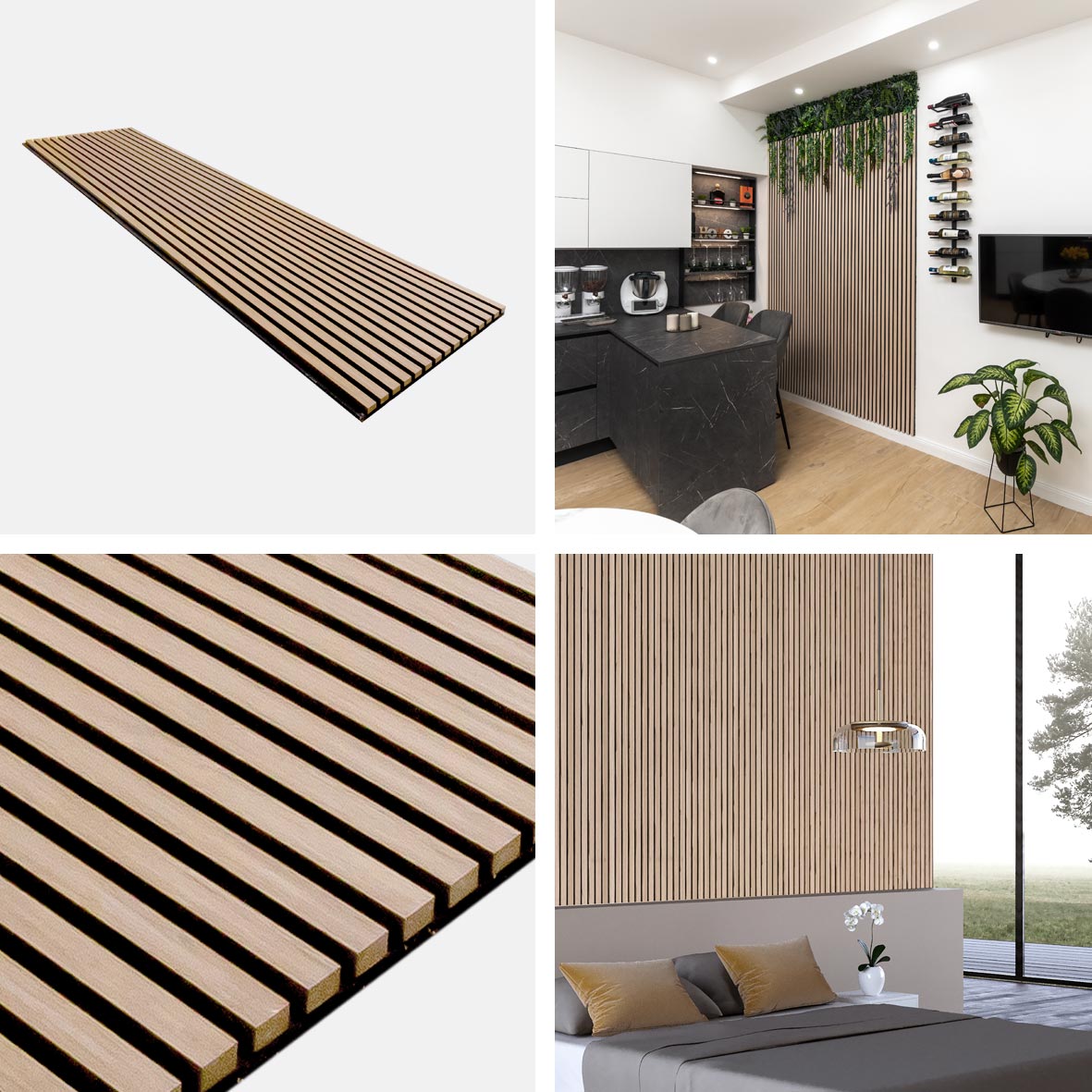 I Pannelli Acustici Fonoassorbenti sono realizzati con materiali di alta qualità. Composti da listelli di legno (MDF) e feltro riciclato per garantire un isolamento acustico efficace.