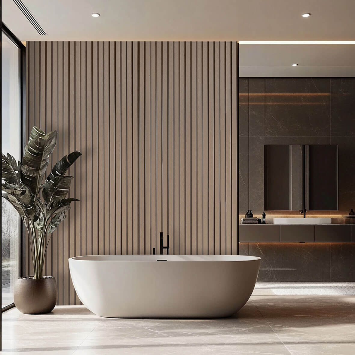 Pur essendo un materiale composito, il WPC offre l’aspetto caldo e accogliente del legno naturale, rendendolo un elemento decorativo adatto a diversi ambienti.